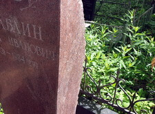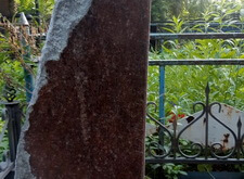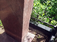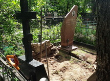 Вертикальный памятник из красного гранита было решено не трогать, и работы по его восстановлению проводились на установленном надгробье: мы восстановили надпись на памятнике и удалили образовавшийся на камне налёт.