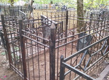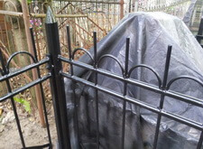 Далее демонтируем все с территории могилы и выпрямляем ограду. Для этого потребовалось полностью откопать две задние ножки, выпрямить ограду и заново залить цементом.