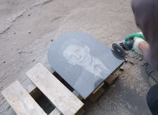 Ещё один заказ на нанесение цветного портрета на плитку из чёрного гранита. После предоставления фотографии и её дальнейшей компьютерной ретуши, мы предоставили клиенту на выбор три самый оптимальных варианта нанесения портрета на гранит.