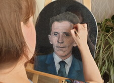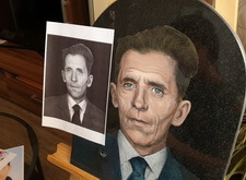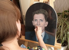 Затем наступил этап детальной прорисовки: первым делом была изображена одежда усопшего, затем – его волосы, с лишь после этого было очерчено лицо. По ходу работы изображение приобретало всё большее сходство с оригинальной фотографией.