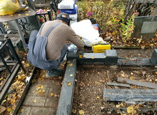Срочный заказ по оформлению мемориального комплекса гранитной брусчаткой. Клиент подчеркнул, что его надо выполнить действительно как можно быстрее, а потому мы взялись за работу сразу же по приезду на кладбище. Первым делом мы сварили металлический каркас, так как брусчатку требовалось уложить не только на территории могилы, но выложить небольшой периметр вокруг места захоронения.