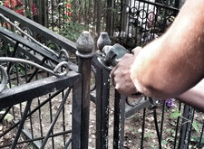 Фотоотчет далее позволит проследить за очередностью работ. Первым делом мы установили крест и восстановили целостность ограды.