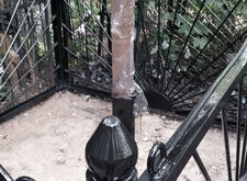 Здесь видно насколько хорошо зачищена ограда. Как обычно чистим до металла.
