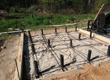 Зачищаем поверхность основания, на которой будет установлено надгробье, врезаем опорные арматурные штыри.