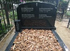 Достаточно простой заказ на изготовление и установку бюджетного памятника на четырёх покойных. Первым этапом работы является создание гранитного цоколя, образующего цветник, под которым, для надёжности, залито бетонное основание.