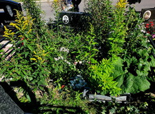 После этого мы поместили в цветник мульчу а участок замыли водой.