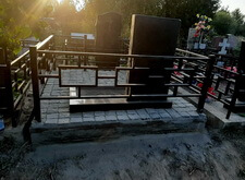 Когда от клиента было получено разрешение приступить к работам, мы вновь вернулись на кладбище. Могила к этому времени приобрела довольно-таки неприглядный вид: место захоронения полностью заросло травой, практически скрыв памятник. Это проблему заказчик предпочёл решить наземным покрытием.